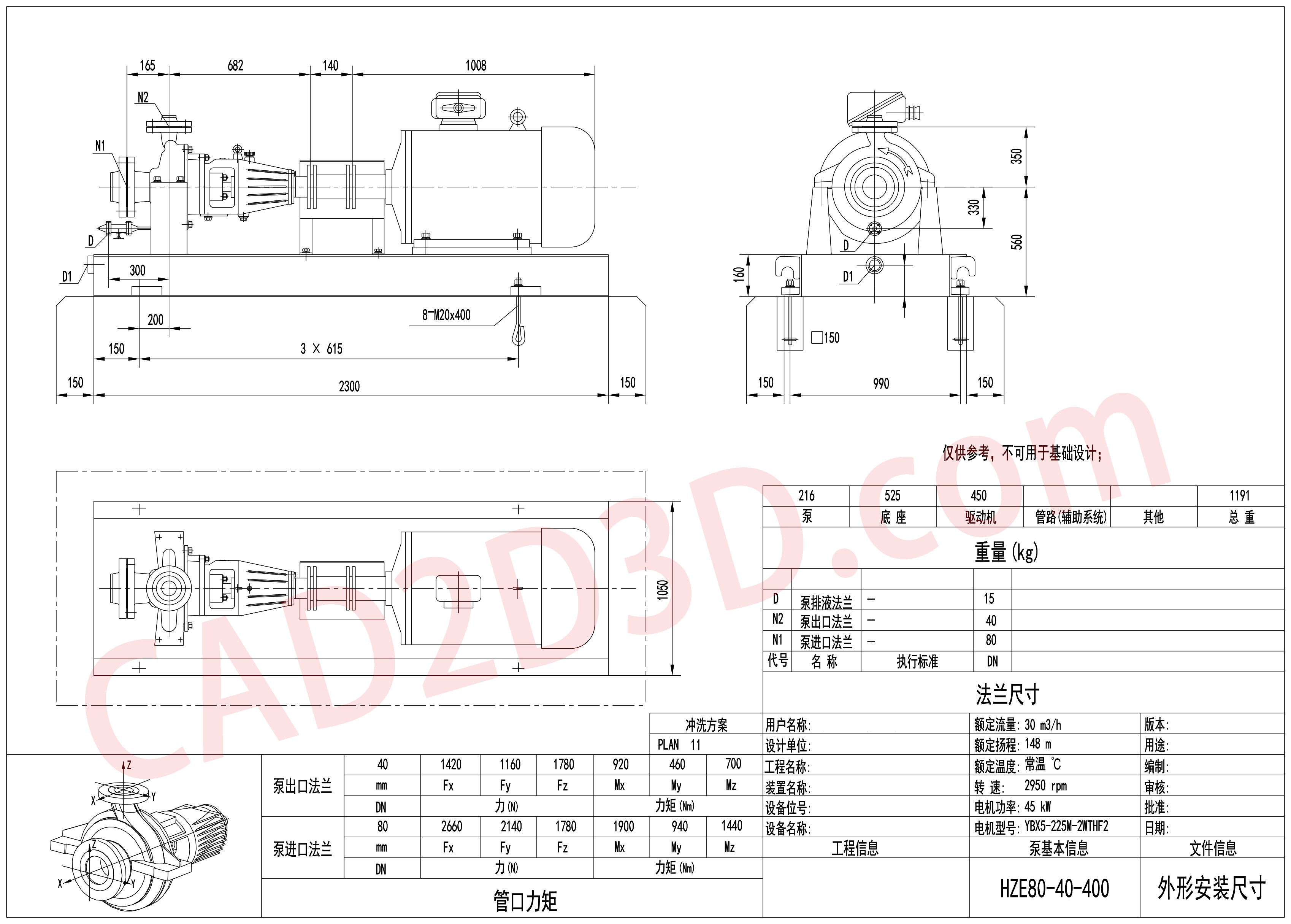 3 泵型 OH2 外形图(进口 DN80 出口 DN40)