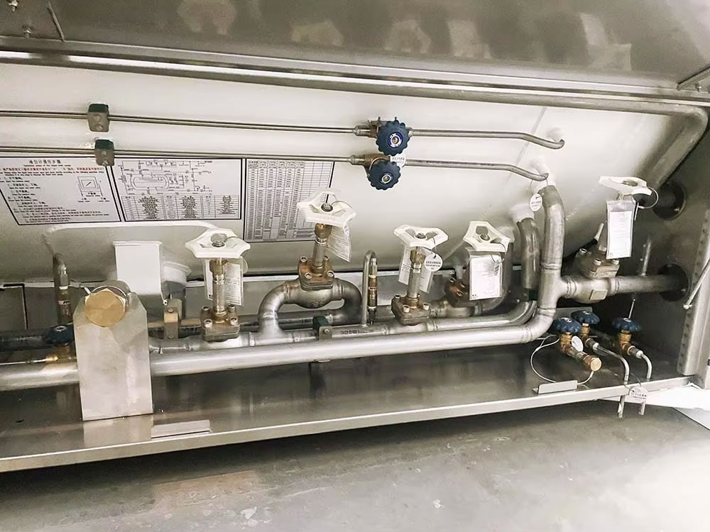 LNG罐箱接口管路一般放置在罐箱侧面或尾部,方便与 LNG 装车臂对接。